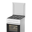 Тип конфорок: газовые • Рабочая поверхность: эмаль • Тип духовки: электрическая • Размеры (ШxВxГ): 600x850x600 мм • Цвет: белый • Газовые конфорки: всего - 4 • Объем духовки: 50 л • Гриль: есть, электрический • Подсветка: есть • Вертел: есть • Мультифункциональная духовка: есть • Количество режимов работы духовки: 5 • Тип управления: механическое • Переключатели: поворотные • Таймер: звуковой • Электроподжиг: есть