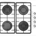 Поверхность: варочная панель • Тип поверхности: газовая • Рабочая поверхность: закаленное стекло • Число конфорок: 4 • Установка: независимая • Газовые конфорки: всего - 4 • Газ-контроль конфорок: есть • Тип управления: механическое • Переключатели: поворотные • Электроподжиг: есть, автоматический • Размеры: 590x510x80 мм • Размер ниши для встраивания: 555x475 мм • Цвет: панель - белый