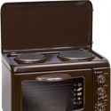 Тип конфорок: электрические • Тип духовки: электрическая • Размеры (ШxВxГ): 550x400x370 мм • Цвет: коричневый • Электрические конфорки: всего - 2 • Объем духовки: 18 л • Максимальная температура духовки: 260 °С • Гриль: есть, электрический • Очистка духовки: традиционная • Подсветка: есть • Количество стекол дверцы духовки: 2 • Тип управления: механическое • Переключатели: поворотные