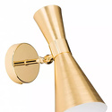 Бра стиля модерн для гостиной, кабинета или спальни имеет размеры 120x270x200 мм. Арматура светильника окрашена в золотой цвет. Лампы в комплекте - отсутствуют. В светильнике применяются лампы накаливания или светодиодная LED-лампа. Цвет плафонов - золото, латунь, с матовой поверхностью. Материал плафонов - металл. Класс электробезопасности - I, степень пылевлагозащиты (IP) - 20. Максимальная мощность лампы (Вт) - 40. Светильник размещается на стене.