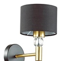 Бра стиля классика для гостиной, кабинета или спальни имеет размеры 140x320x200 мм. Арматура светильника окрашена в латунный и черный цвет. Лампы в комплекте - отсутствуют. В светильнике применяются лампы накаливания или светодиодная LED-лампа. Цвет плафонов - черный, с матовой поверхностью. Материал плафонов - металл, текстиль. Класс электробезопасности - II, степень пылевлагозащиты (IP) - 20. Максимальная мощность лампы (Вт) - 60. Светильник размещается на стене.