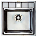 Форма чаши: прямоугольная • Материал: нерж. сталь • Количество чаш: 1 основная • Установка: врезная • Крыло: есть • Глубина чаши: 21.5 см • Измельчитель пищевых отходов: нет • Размеры: 50x50 • Мотажное отверстие: 50x50 • Диаметр сливного отверстия: 3 "