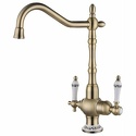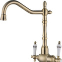 Назначение: кухонный • Конструкция: однорычажный • Монтаж: горизонтальный • Материал: покрытие - бронза • Монтажные отверстия: 1 отверстие • Форма излива: традиционная • Душевая лейка в комплекте: нет • Донный клапан в комплекте: есть