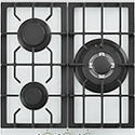 Тип: полностью газовая • Поверхность: закаленное стекло • Конфорки: газ 3 шт, турбоконфорка • Габариты для встройки: Ш 430 мм, Г 480 мм